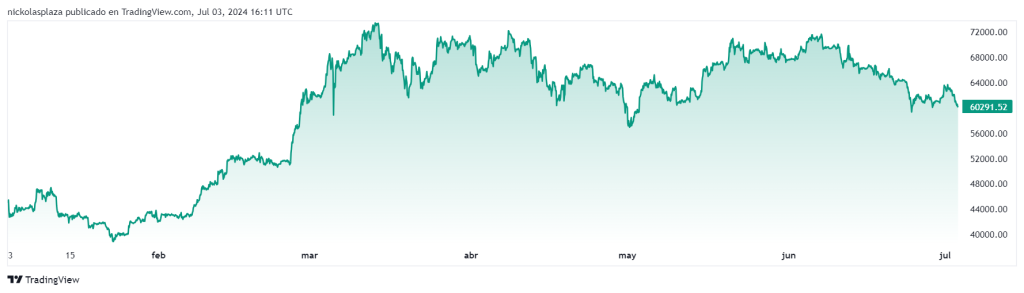 En términos de precio, bitcoin ha mostrado una tendencia de lateralización en las últimas semanas, fluctuando entre los 56,000 y 72,000 dólares, su máximo histórico. Según el analista Willy Woo, se espera que esta fase continúe por varias semanas antes de que se inicie una tendencia alcista.